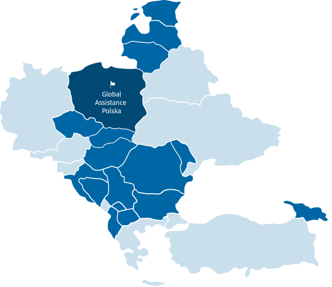 Grupa Global Assistance istnieje od 2014 roku i poza Polską obecna jest w Bułgarii – skąd wspierane są Macedonia Północna i Kosowo, w Serbii skąd wspierana jest Bośnia i Hercegowina, w Czechach, Rumunii skąd wspierana jest Mołdawia, Słowacji, Gruzji, Węgrzech, Chorwacji oraz na Litwie, skąd obsługiwane są wszystkie kraje bałtyckie.